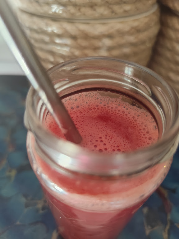 Une seule matière du cordage fin de jute + une extraction de jus d’un seul fruit, la Pastèque! Que pensez-vous de ce duo de couleurs